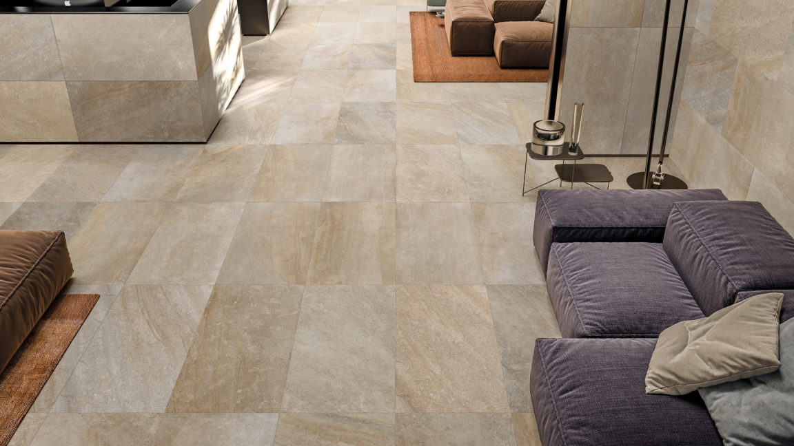 DiscoveryBlended combines rock, stone and sand in an original way, translating them into fluid surfaces that present ever-changing motifs.