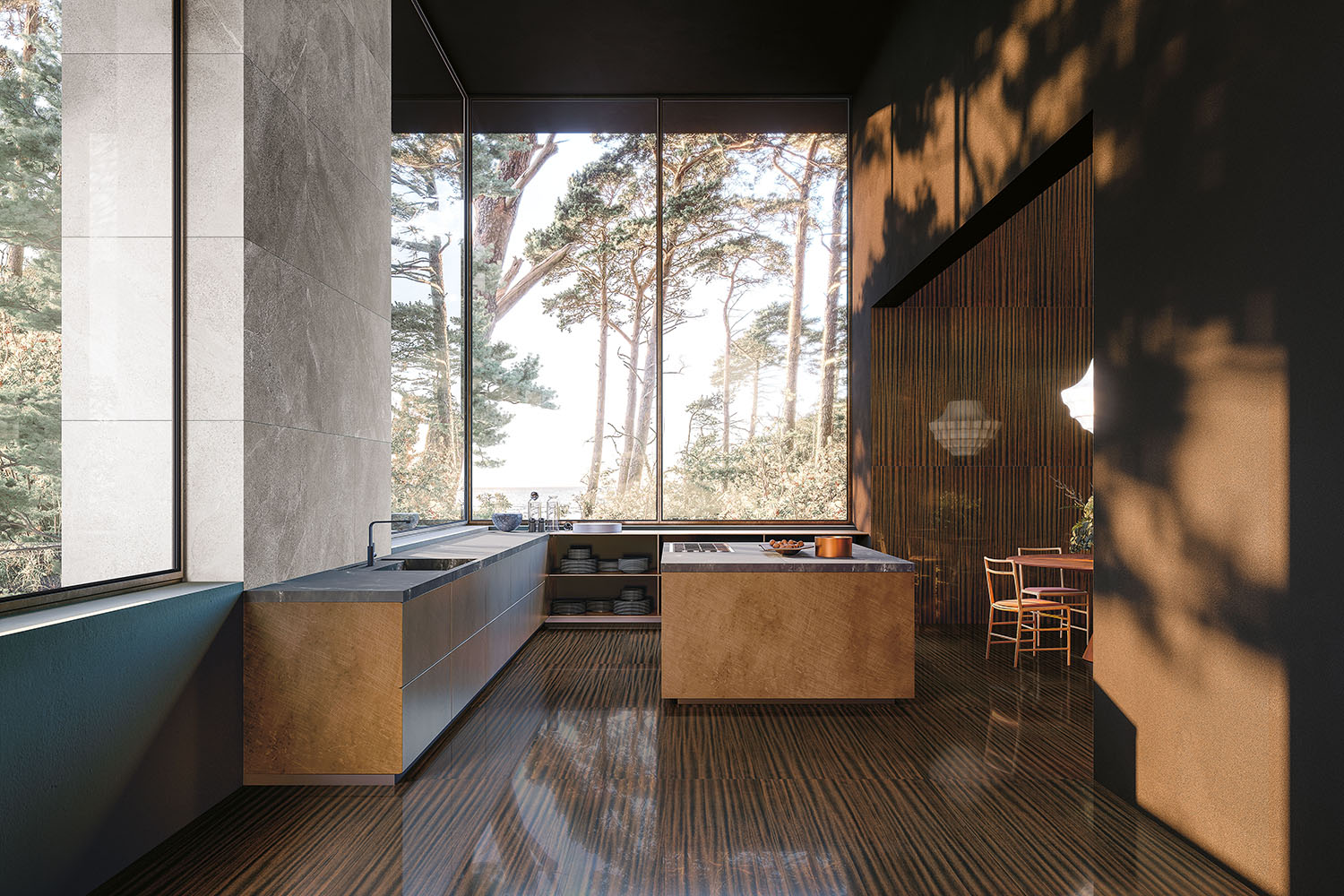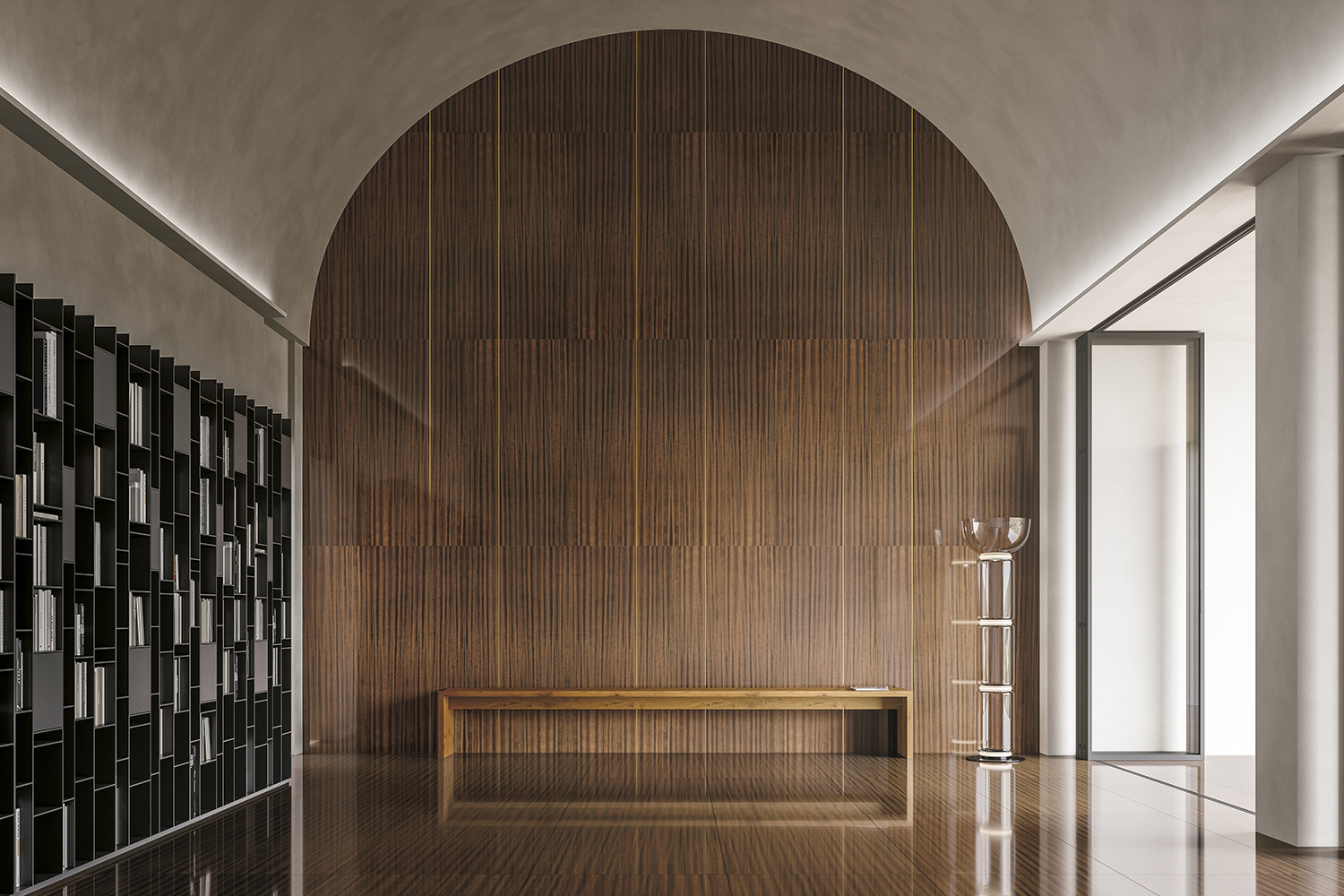 Canal Grande is offered in two finishes: Lucido enhances the reflections of the surface, recalling the wood of the exclusive boats that inspired the collection; Soft is characterised by a matt effect that softens contrasts, giving a more modern visual appeal.