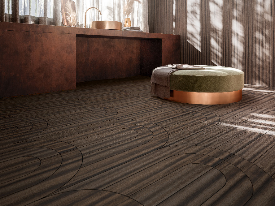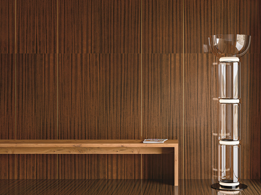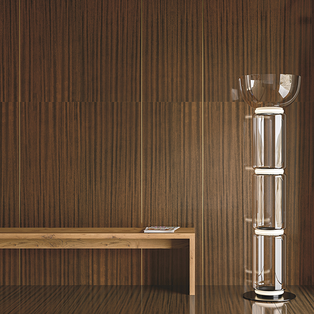 Have you ever tried to photograph all the iridescences of wood? This natural appearance of mahogany is as fascinating as it is elusive, and only in Canal Grande is it the result of meticulous research. Aiming to reproduce the play of light and shadow of luxury yacht planks, the parallel, non-uniform lines that make up the design give porcelain stoneware the same effect of depth.