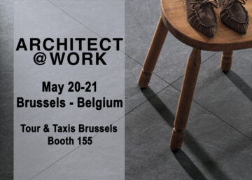 We will be present at Architect@Work in Brussels, where you can discover our porcelain stoneware collections: Osmos – concrete effect –, Ink – part of the Iconic Design collection –, Prestigio Kaleidos – brecciated marble effect –, Eras and Moon – stone effect.