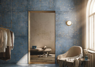 The result is a real fresco, created in the cutting-edge laboratory of Refin and transformed into an exclusive decorative ceramic surface, deeply textured and rich in colour contrasts.