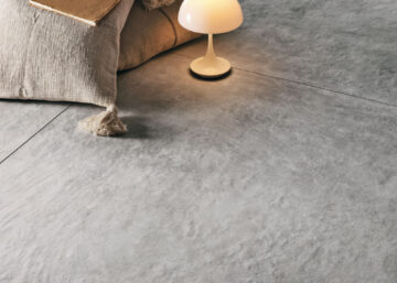 The collection is characterised by its exquisitely textured surfaces, enriched by spatula marks, imperceptible waves and a careful chromatic stratification. The sponge technique in particular transforms each slab into a surface steeped in craftsmanship with a unique and unpredictable character. The sensation of being in front of a fresco is further reinforced by the presence of cracks and chemical reactions dotting the surfaces, but also by the scrupulous choice of colours – Calce, Ocra, Ombra, Lapis and Terra -, all shades that clearly recall the colours of the wall art, together with their typical heritage and dusty appearance.