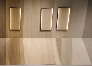 In an exhibition designed to welcome visitors on a sensory journey, we showcased many new collections, the result of different research paths: from the inspirations of the mineral world and the woody essences of the ETHEREA and EIK collections, to industrial and urban inspirations interpreted with contemporaneity in GRAYN, and to the two most important projects: the iconic UPSIDE proposal, a reinterpretation of the Beside collection designed by Massimiliano Adami in 2011, and RELIEFS, an interesting 3D wall coverings project.
